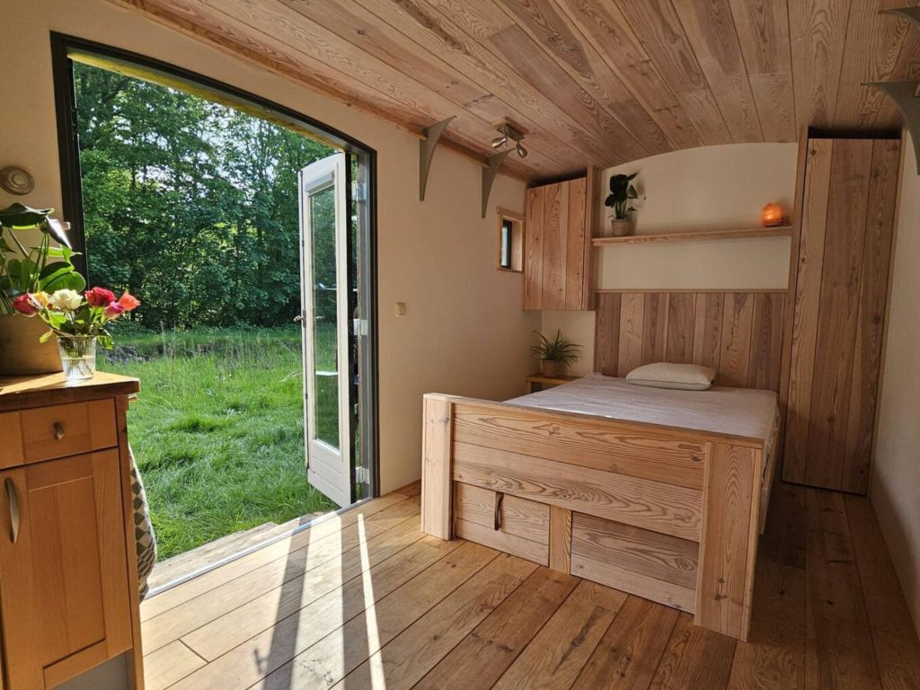 A serene, natural setting in the countryside. A wood-fired sauna, with a lake to dive into when you need to cool off. A ceremony room with panoramic windows that feels like you’re right there suspended in nature.